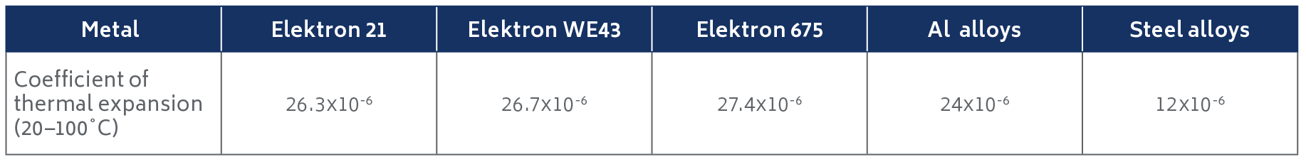 Table 4. Comparison of the coefficient of thermal expansion between elektron alloys.